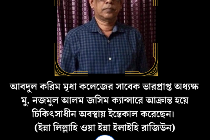 ক্যান্সারে আক্রান্ত হয়ে অধ্যাপক নজমুল আলম জসিমের ইন্তেকাল