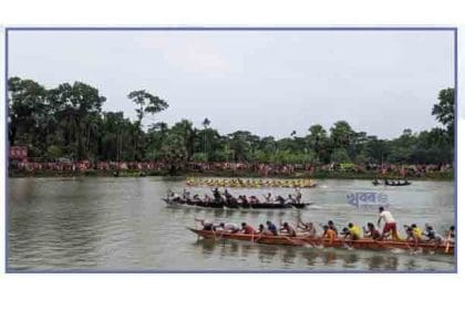 শারদীয় দুর্গাপূজা উপলক্ষে নিবারণ কবিরাজ বাড়ির দিঘিতে নৌকা বাইচ অনুষ্ঠিত