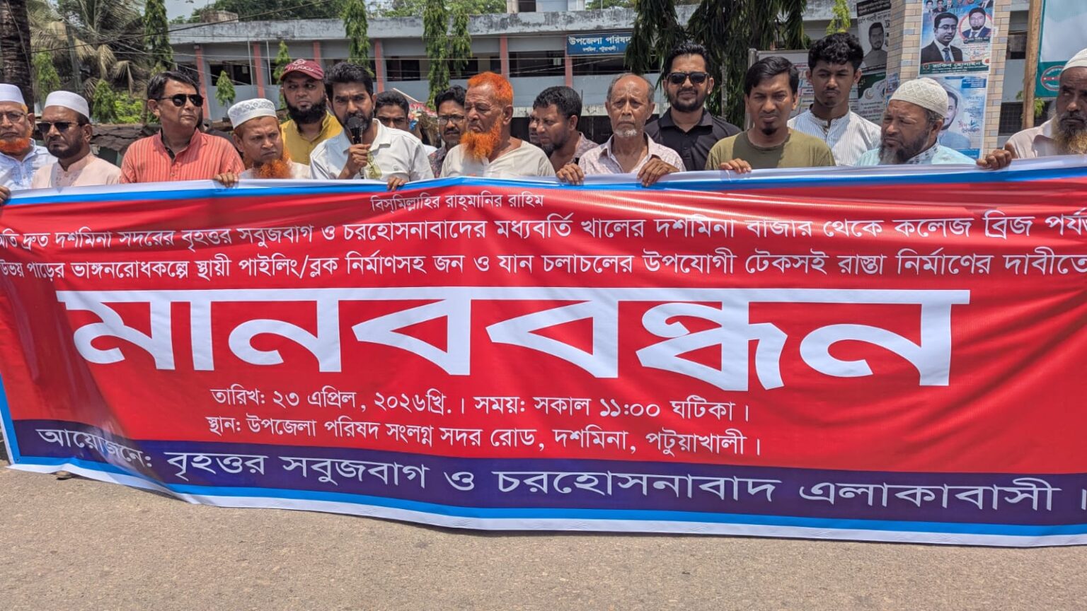 ভাঙন রোধ ও টেকসই রাস্তা নির্মাণের দাবিতে দশমিনায় মানববন্ধন