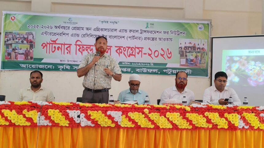 বাউফল প্রতিনিধি: পটুয়াখালীর বাউফল উপজেলায় কৃষি সমৃদ্ধি ও পুষ্টি নিরাপত্তা নিশ্চিত করতে ‘পার্টনার’ প্রকল্পের আওতায় ফিল্ড স্কুল কংগ্রেস-২০২৬ অনুষ্ঠিত হয়েছে।