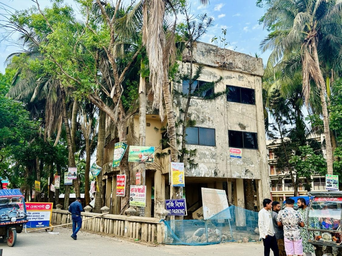 প্রাথমিক বিদ্যালয়ের পাশেই ঝুঁকিপূর্ণ ভবন