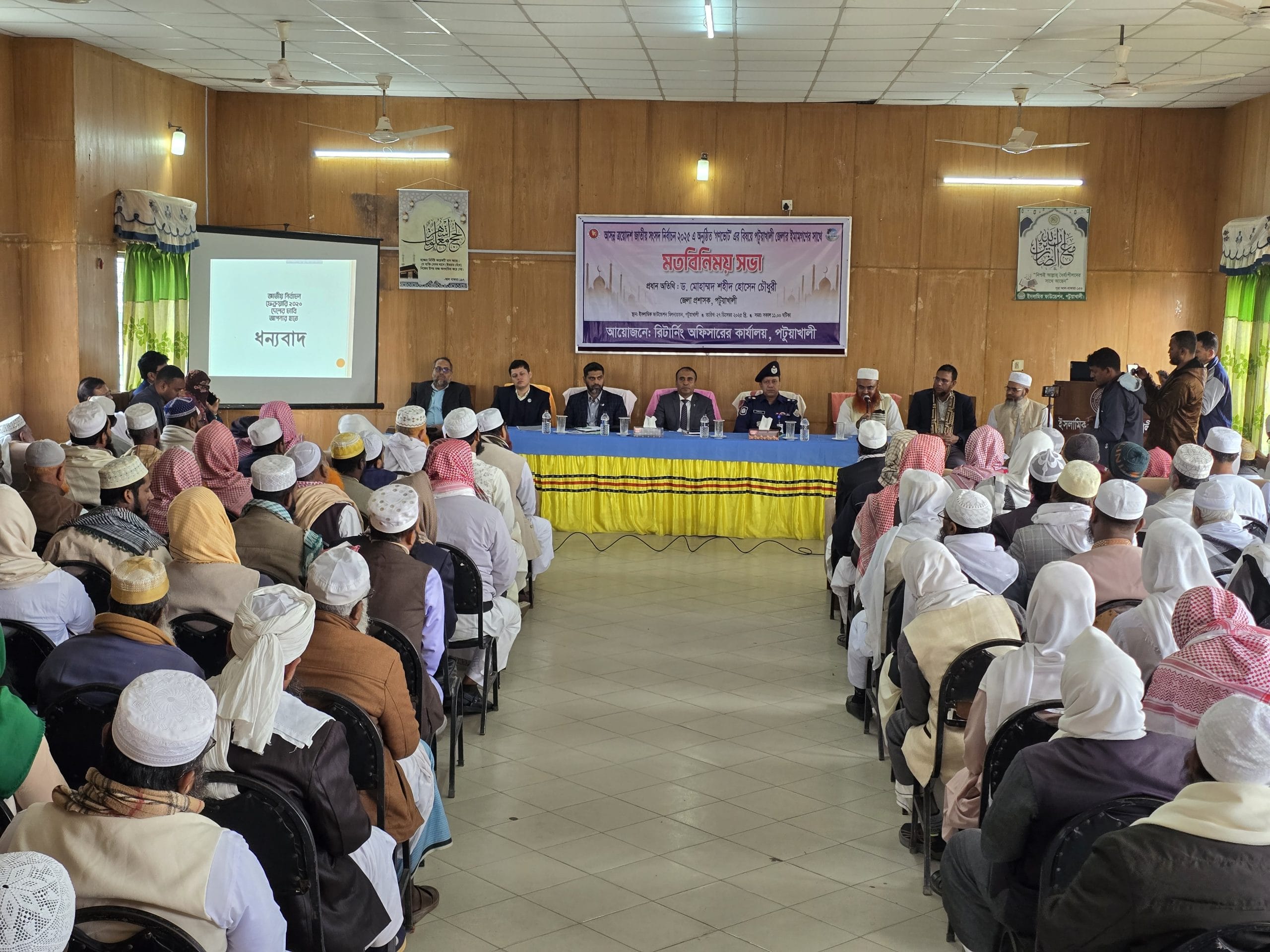 আসন্ন ত্রয়োদশ জাতীয় সংসদ নির্বাচনে গণভোটের বিষয়ে পটুয়াখালী জেলার ইমামদের সঙ্গে মতবিনিময় সভা অনুষ্ঠিত হয়েছে।