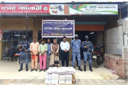 পটুয়াখালীতে কোস্ট গার্ডের যৌথ অভিযানে ২৭৩ কেজি নিষিদ্ধ পলিথিন জব্দ