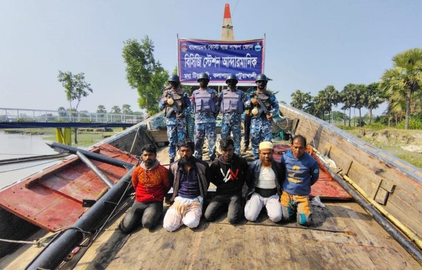পটুয়াখালীর কলাপাড়ায় আর্টিসানাল ট্রলিং বোট ও জালসহ ৫ জেলে আটক করেছে কোস্ট গার্ড।