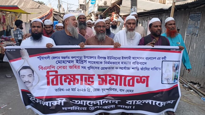 ইদ্রিস হত্যার প্রতিবাদে দশমিনায় ইসলামী আন্দোলনের বিক্ষোভ মিছিল