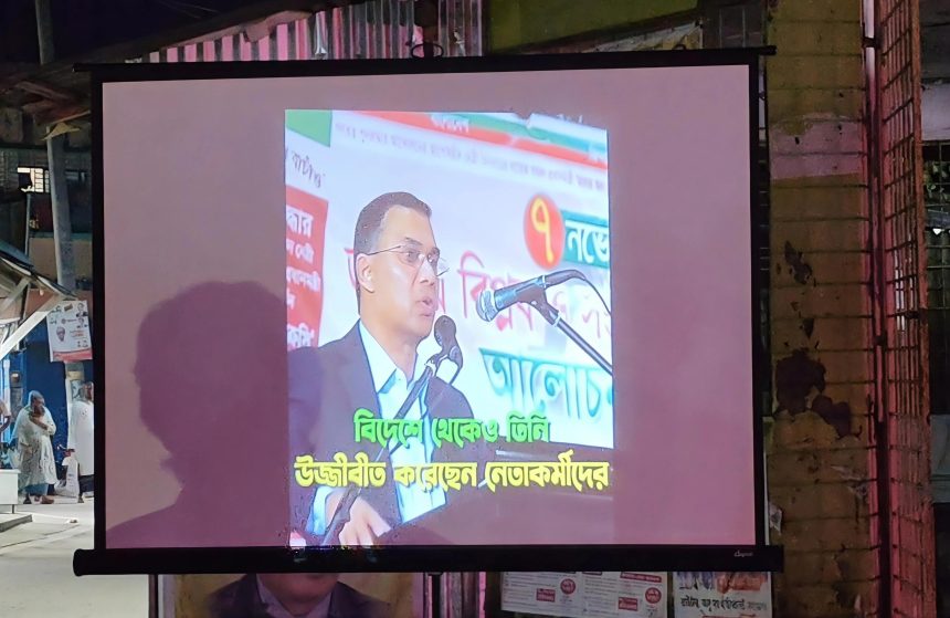 বাউফলে নির্বাচনী প্রচারণায় বিএনপি, বড় পর্দায় জিয়া পরিবারের উন্নয়ন চিত্র