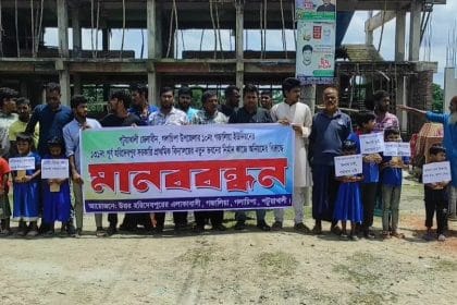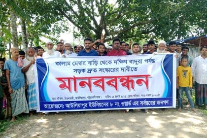 পটুয়াখালীর আউলিয়াপুরে যোগাযোগ ব্যবস্থা ভেঙে পড়ার পথে,মানববন্ধনে ক্ষুব্ধ জনতা