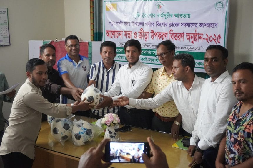 পল্লী প্রগতি সমিতি কর্তৃক বাস্তবায়নাধীন সমৃদ্ধি কর্মসূচির আওতায় পটুয়াখালী সদর উপজেলার ১২৬টি কিশোর ক্লাবের সদস্যদের মাঝে ক্রীড়া উপকরণ বিতরণ অনুষ্ঠান ও আলোচনা সভা অনুষ্ঠিত হয়েছে।